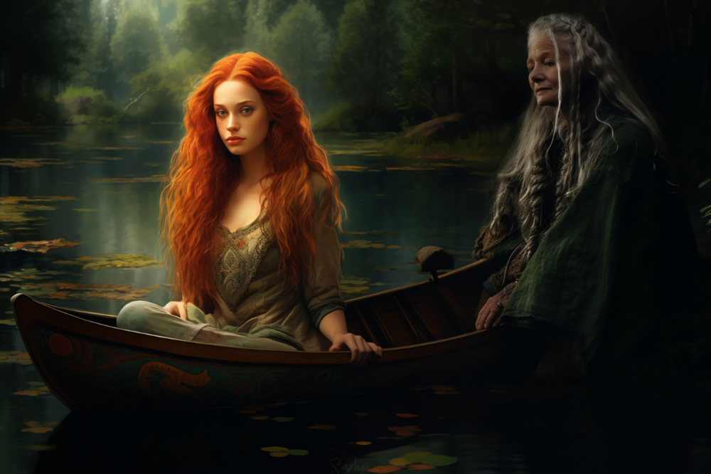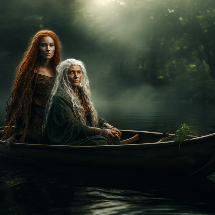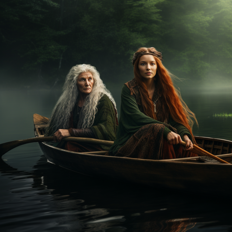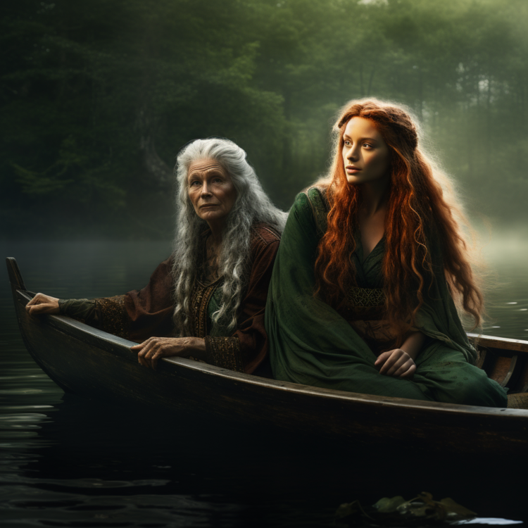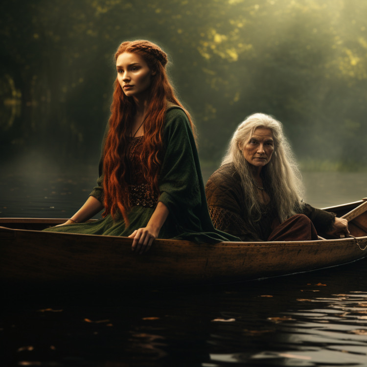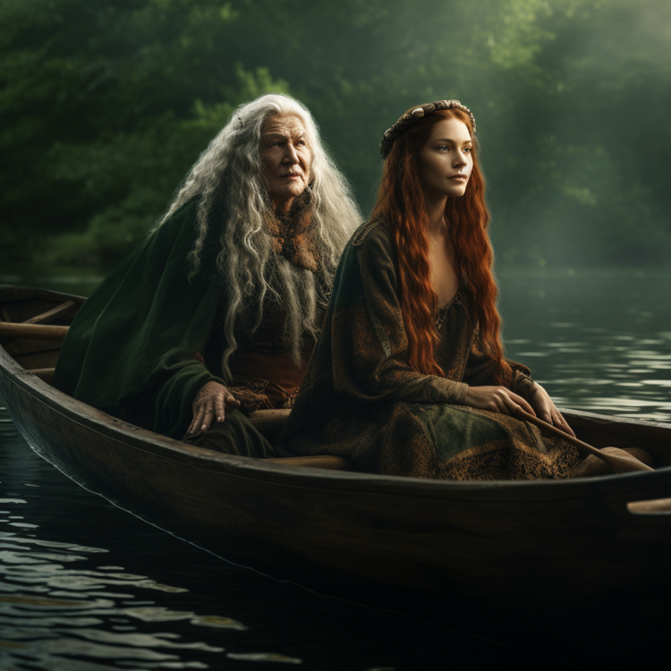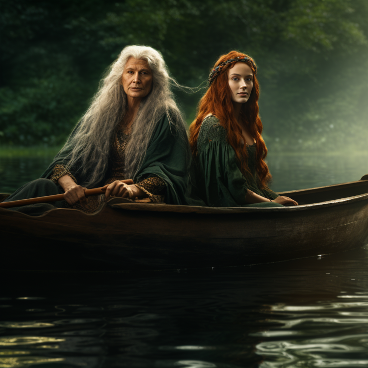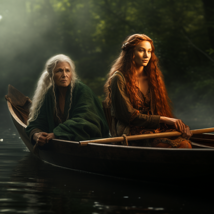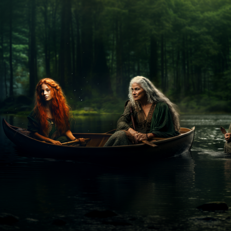 Ach Mensch, es könnte so schön sein ... Ich wollte jetzt auch mal zwei Personen auf ein Bild mit dieser Methode packen. Eine lange Durststrecke... Ich wollte diese Dame in das nebenstehende Boot setzen. Das hat in recht kurzer Zeit sogar mit diesem Prompt https://s.mj.run/OULfCNiQNqc A young Celtic woman with red hair sits in a colorful canoe https://s.mj.run/nON7Gjo7ECI on a small river through a dense forest at night. Photorealistic funktioniert: Leider sieht sie ein wenig anders aus, was ich schade fand. Aber gut. Ein anderes Bild habe ich nicht bekommen, auf dem das Boot nur halb zu seen war. Deshalb war ich schon ganz zufrieden. Nächster Schritt: Diese Dame, die Schamanenmeisterin, dahinter. Es ergaben sich leider damit Probleme beim Größenverhältnis, deshalb habe ich das Bild einmal mit Zoom Out 1.5 geändert. Mit nebenstehendem Bild habe ich mir vielen Fehlschlägen genau ein Bild mit PAN konstruieren können, was mir annähernd gefallen könnte. Der Promt war beim Aufruf von PAN in https://s.mj.run/GIeP3A4ohn0 an old woman celtic shaman also sits in the canoe behind the young woman. She holds a paddle. photorealistic geändert worden. Allerdings ist hier auch noch viel Luft nach oben! Die rechte Seite ist viel zu dunkel, was bei diesen Zoom-Funktionen ein generelles Problem zu sein scheint. Zumal sitzt die alte Dame immer noch nicht soooo super im Boot (in den anderen Bildern sitzte sie jedoch definitv auf dem Wasser neben dem Boot). Aber gut, es ist ein Anfang. Nach der "Quadratur" habe ich versucht, Varianten zu erzeugen, da das ja mit dem obigen Format nicht möglich ist (nach einer Pan-Anwendung gibt es keine Varaianten-Buttons). Leider kommen dann nur noch zwei richtig junge Frauen ins Boot. Also kein Mutter-Tochter-Verhältnis. Wieder nix. Was ich überhaupt nicht geschafft habe: Den Frauen ein Paddel in die Hand zu drücken. Da war Midjourney tatsächlich sehr beratungsresistent.