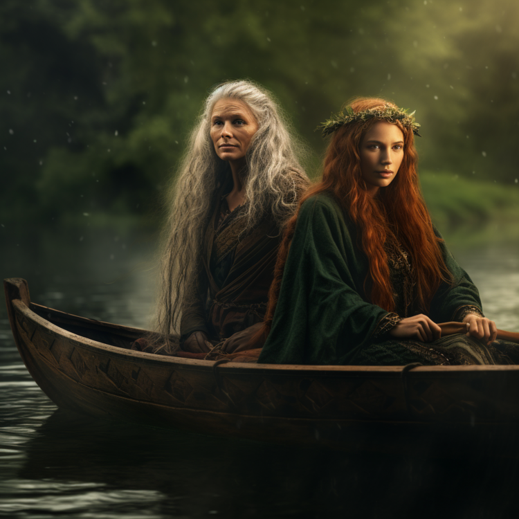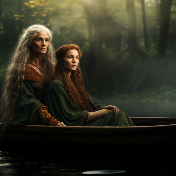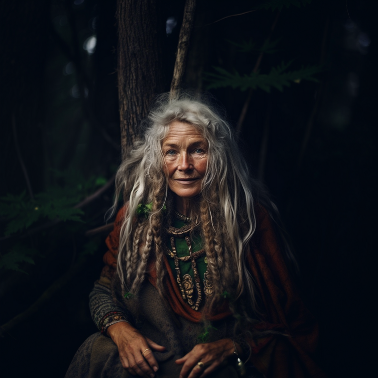 Da brat mir einer einen (veganen) Elch (Störche habe ich gerade nicht zur Hand)! Ich habe mit dem Bild oben mal weiterexperimentiert. Und vor allem noch mit dem folgenden hier, was eine Raumkrümmung zu beinhalten scheint: Ist jetzt nicht so überragend. Aber die Varationen vom Typ Strong, waren echt Hammer! Ist zwar immer noch nicht das Wunschbild dabei, aber trotzdem sind sie schon sehr schön: Das Lieblingsbild aber ist für mich aktuell dieses hier: Die ältere Schamanin hat einen gütigen Gesichtsausdruck und ihre - etwas verunsichert dreinblickende - Novizin trägt einen Kranz im Haar. Die beiden sind ja unterwegs zu einer sehr schwierigen Prüfung, in der die Novizin endgültig zur Schamanin geweiht werden soll. Irgendwie mag ich das Bild. Auch wenn meine Vorstellungen doch anders ausgesehen haben.
