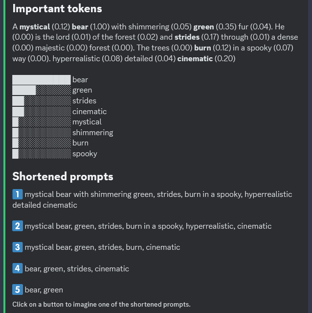 Midjourney Prompt analysieren mit /shorten