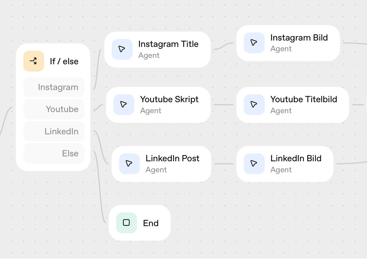 In solchen Szenarien könnte der Agent Builder die bisher manuelle Koordination zwischen mehreren Tools vereinfachen – allerdings erst, wenn die entsprechenden Schnittstellen zu den erforderlichen Anwendungen verfügbar ist. Aktuell (Stand 7.10.) sind aber noch keine Bild- oder Video KIs verfügbar – auch nicht OpenAIs eigene Modelle wie GPT Image, Dall-E oder Sora.