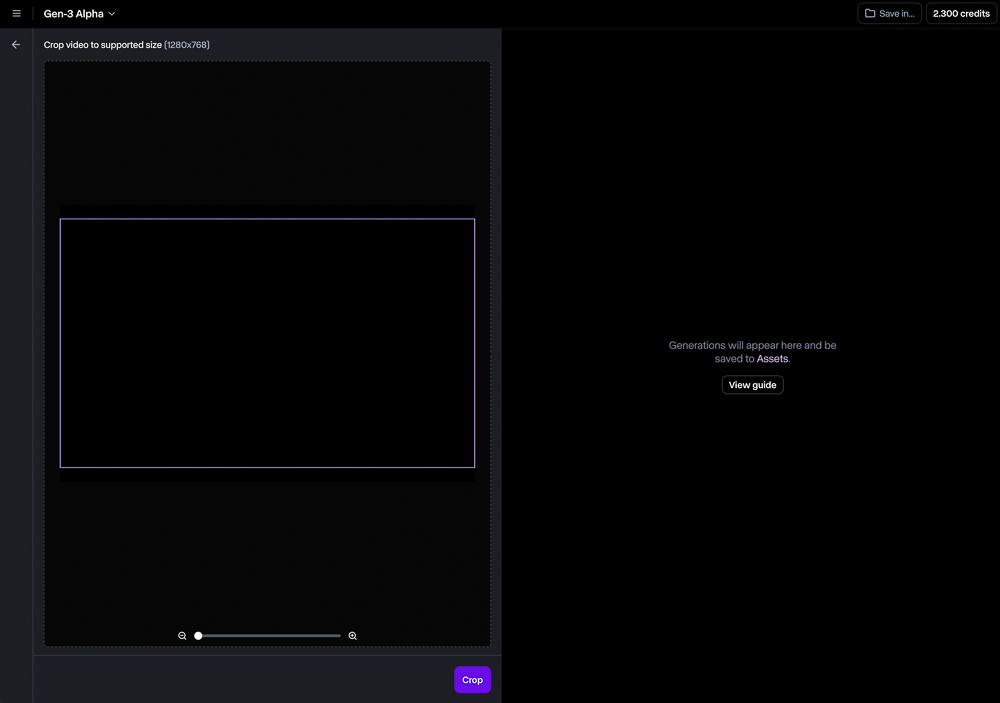 Es können nur Videos im 16:9 Format als Vorlage genutzt werden. Ladet Ihr ein Video in einem anderen Format hoch, ist das aber auch kein Problem: Runway schneidet (Crop video to supported size) das Video dann in das 16:9 Format zurecht.