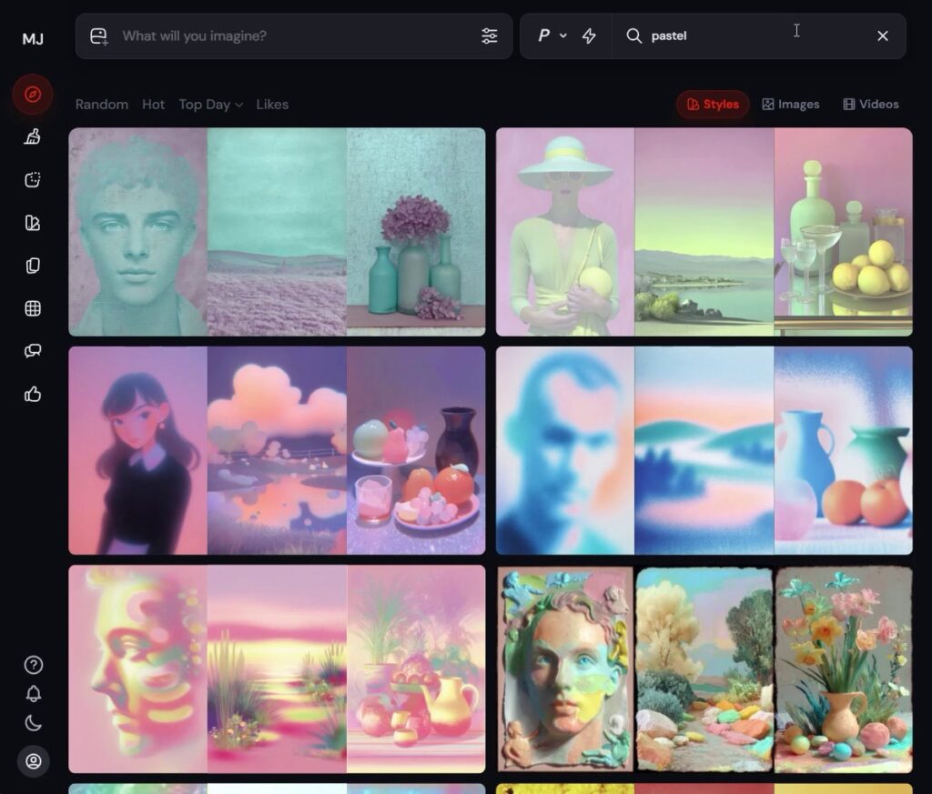 Midjourney hat ein Video veröffentlicht, das eindrucksvoll zeigt, wie effizient man SREF Codes mit dem neuen Style Explorer finden kann: